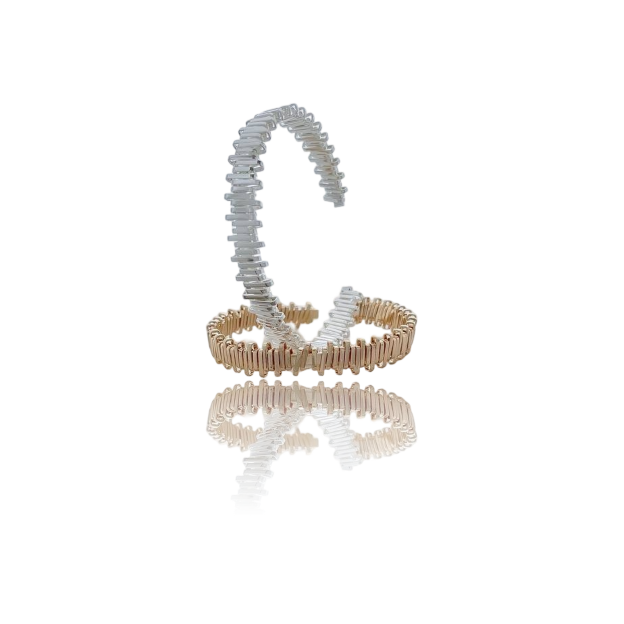 اگر به دنبال ترکیبی از ظرافت، سادگی و جسارت در طراحی هستید، بنگل (دستبند النگویی) آبکاری نقره طرح مدرن همان اکسسوری است که استایل شما را خاص و امروزی می‌کند. این مدل از دستبندهای النگویی با الهام از فرم‌های هندسی و طراحی‌های مدرن ساخته شده و جلوه‌ای مینیمال و شیک دارد که به‌راحتی با هر نوع پوشش، از لباس‌های روزمره گرفته تا استایل‌های رسمی، هماهنگ می‌شود.
