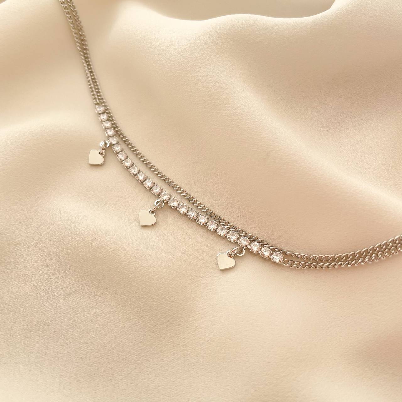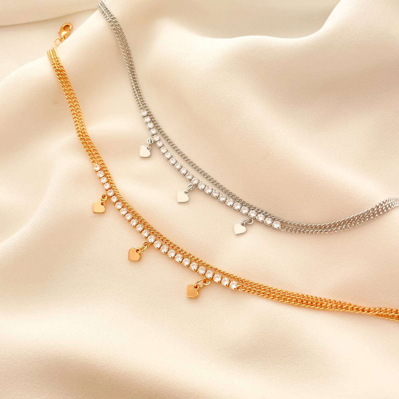 پابند زنجیری دولاین با نگین تنیسی و آویز قلب YSX