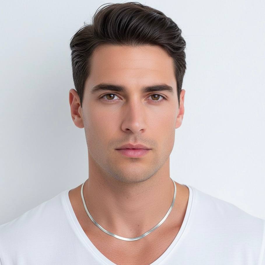 گردنبند هرینگبون (ماری) ۴ میلیمتر استیل یکی از شیکترین و پرطرفدارترین زنجیرهای تخت و براق در جهان فشن است. این مدل روی گردن حالتی صاف، یکدست و فوقالعاده شیک ایجاد میکند و مناسب کسانی است که دنبال زنجیری با جلوه زیاد اما ظرافت کافی هستند.