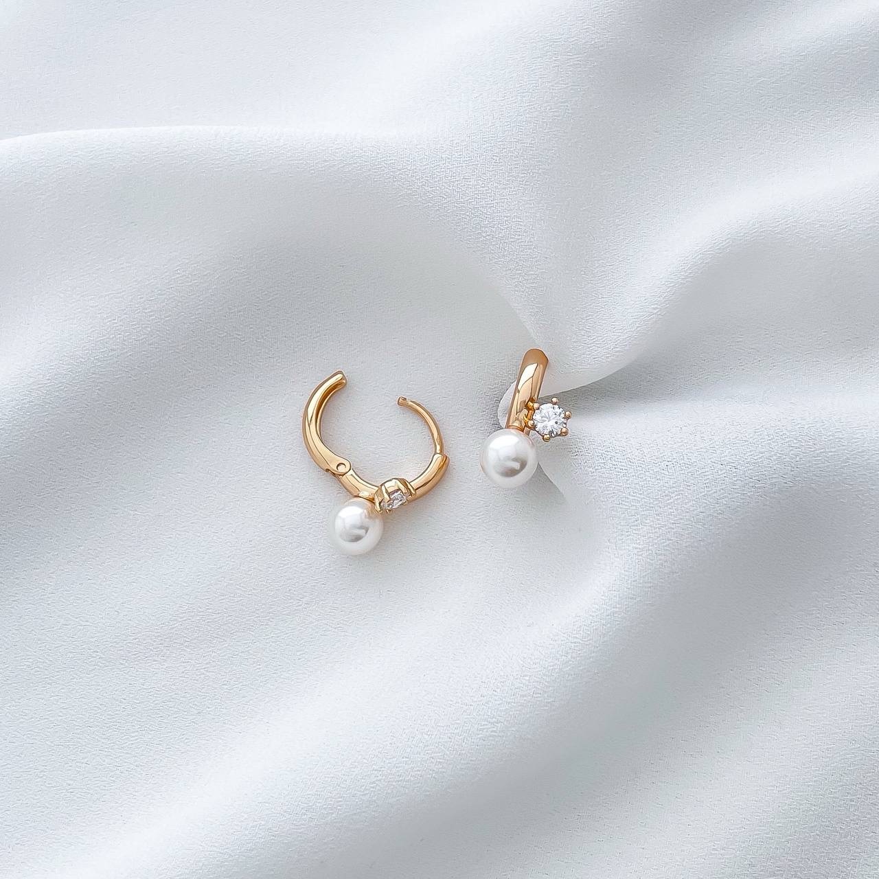 گوشواره حلقه مروارید تک نگین ژوپینگ با فرم خاص و بدنه براق، ساختهشده از کوپر با آبکاری طلا و طراحی چشمگیر، مناسب استایلهای جسور و مدرن است.