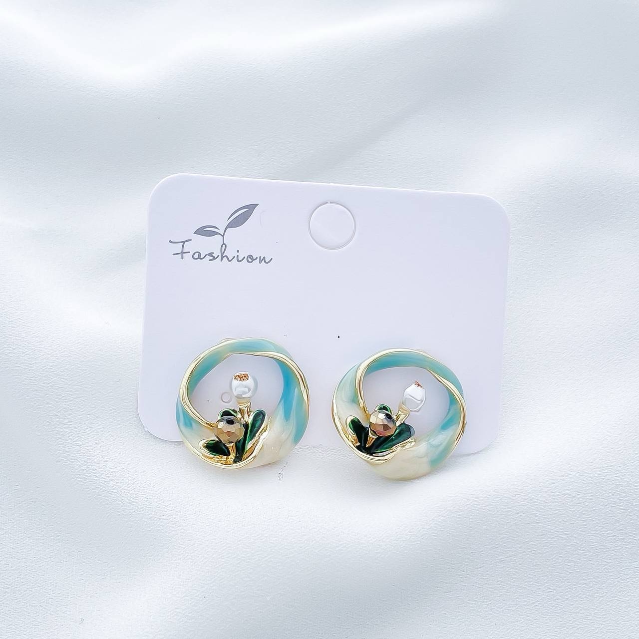 خرید گوشواره میناکاری فیروزه ای حلقه گل استیل | اکسسوری زنانه خاص